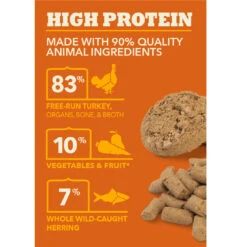 With all the benefits of raw nutrition and none of the mess, ACANA Freeze-Dried Food, Free-Run Turkey Recipe satisfies your dog’s natural cravings in a convenient, freeze-dried form. Made from 90% quality animal protein from free-run turkey and whole wild-caught herring, and infused with delicious bone broth, you can serve morsels or patties on their own or as a topper at mealtime.