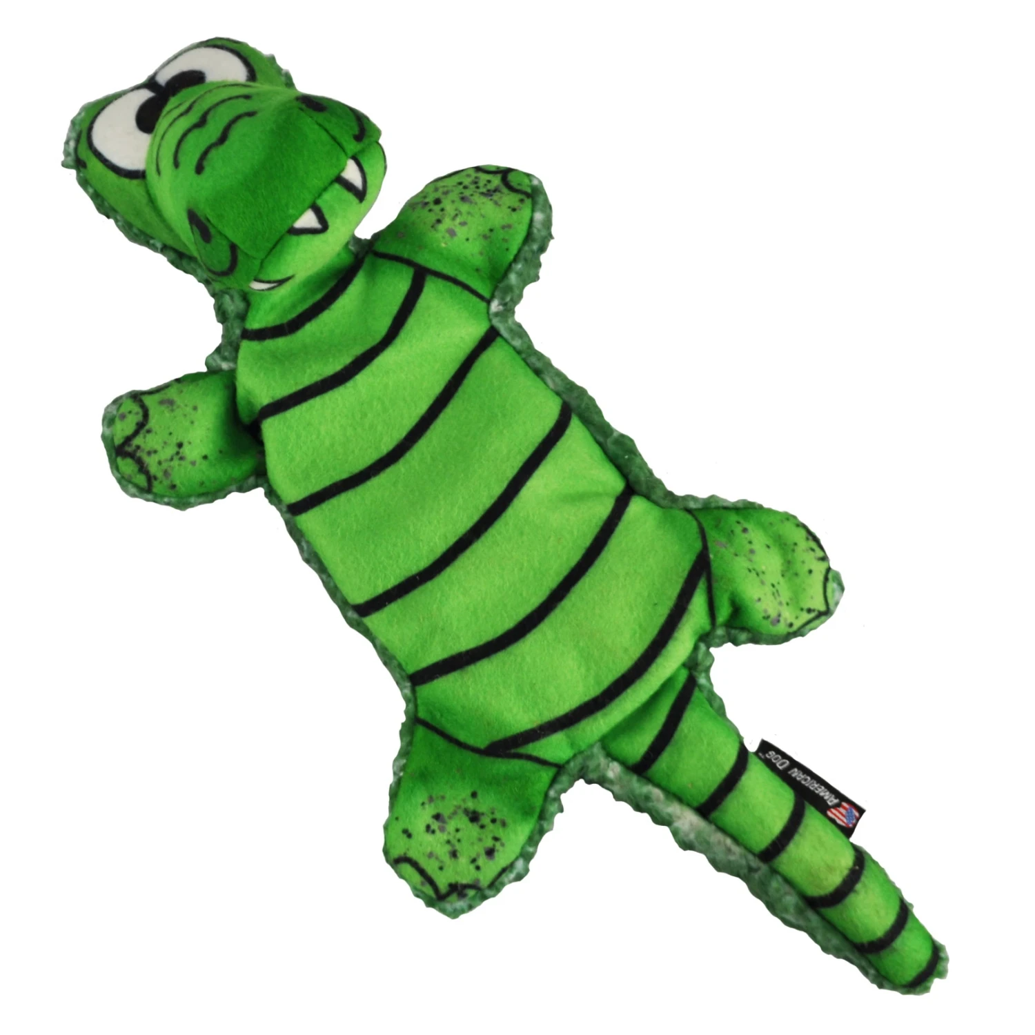 American Dog Allie Gator is soft, durable and made to look adorable. She won’t bite, but loves to cuddle with your furry friends. It floats, has a stuffed head, and features crinkle material throughout the body for extra fun. We choose to carry American Dog because they are dedicated to producing USA Made Dog Toys that are of excellent quality. They also provide a portion of every toy sold to rescues.