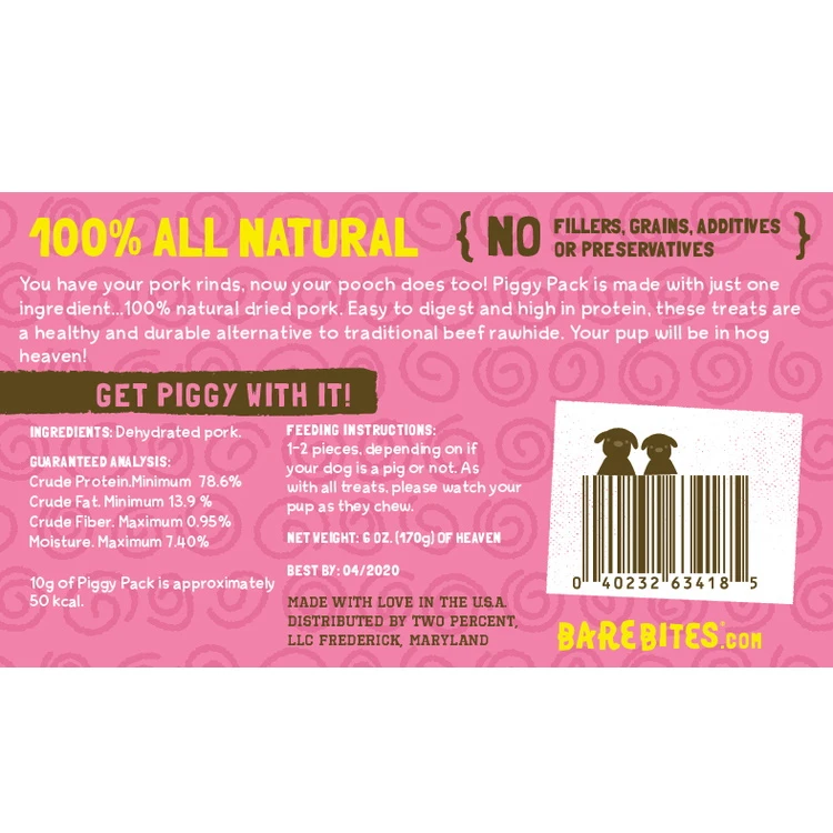 When Feeding this wholesome snack, your pup can get Piggy with it! Piggy Pack is a natural treat made using 100% USDA Dehydrated Pork. Upholding premium standards, Piggy Pack is manufactured in a USDA facility with SQF3 certifications. It’s loaded with flavor and protein while containing NO fillers, grains, additives, or preservatives. Only the breast for your furry friend!
