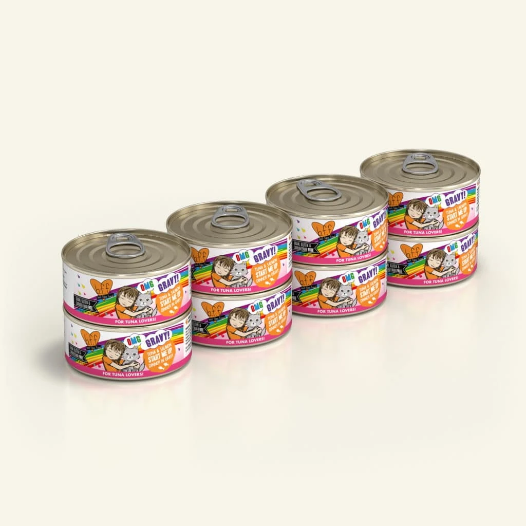 Once you open this can, you’ll hear your cat rev up its engines in order to dive into this delicious dinner. Don’t be surprised if your kitty meows for more once they eat up the minced pieces of tuna and salmon, and lick up all of the tasty gravy!
