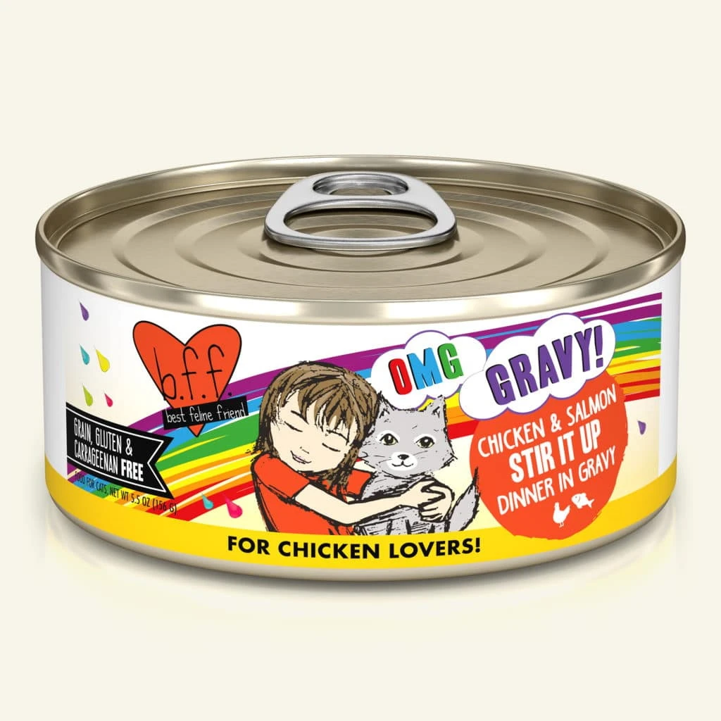Stir up your kitty’s taste buds with this tasty, chicken-based meal! The chicken and salmon dinner in gravy will leave your kitty meowing for more!
