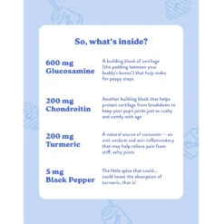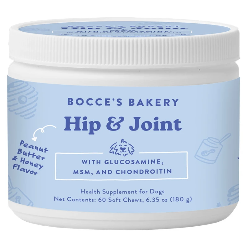 Bocce’s Bakery Hip & Joint Soft Chews is an effective and easy to use supplement that features Glucsoamine and Chondroitin. The active ingredients work to help support your dogs joint health.