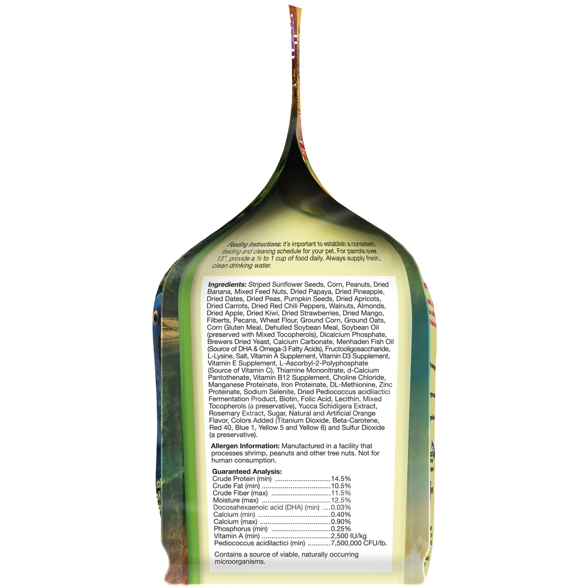Tropical Carnival has the “Big Bites” for big beaks that parrots love! It’s a balanced blend of big, chunky, crunchy, wholesome morsels of right-sized fruits, veggies, nuts, seeds, and grains, plus our twice-baked ZOO-Vital Biscotti Biscuits. All the fun shapes, textures, varieties, sizes, and colors make this a stimulating diet that your macaw will love to eat. It’s simply irresistible!