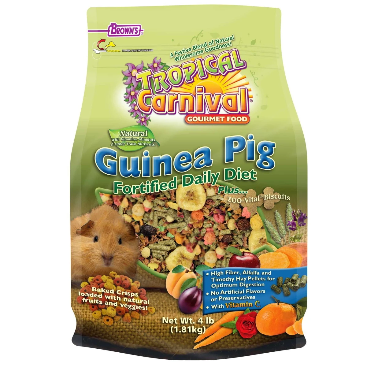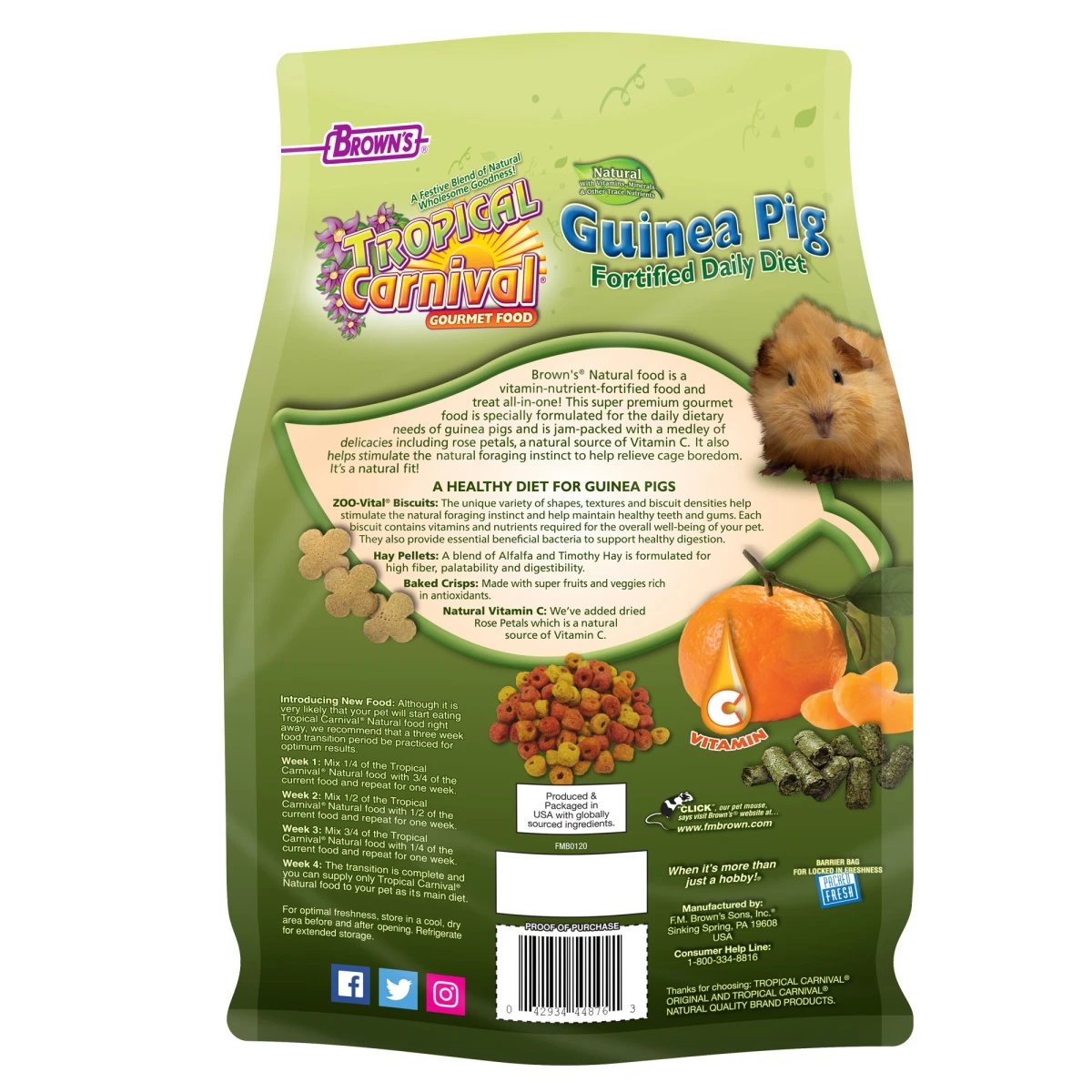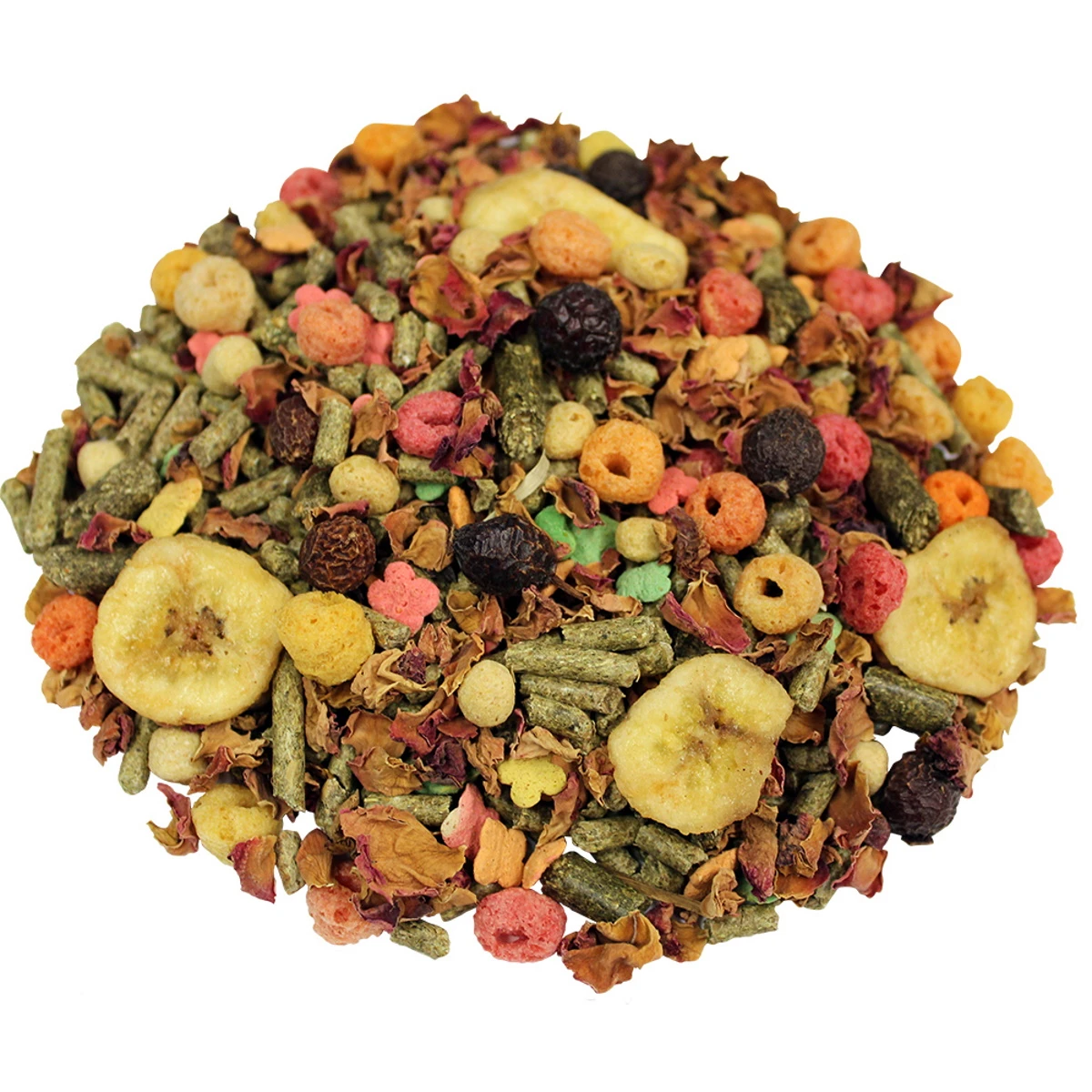 Brown’s natural food is a vitamin-nutrient-fortified food and treat, all-in-one! This super premium gourmet food is specially formulated for the daily dietary needs of guinea pigs and is jam-packed with a medley of delicacies including rose petals and rose hips, natural sources of vitamin C. It also helps stimulate the natural foraging instinct to help relieve cage boredom. It’s simply a natural fit.