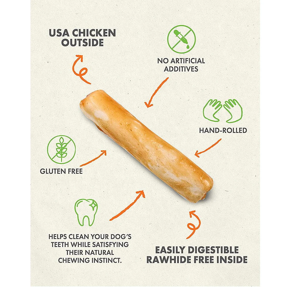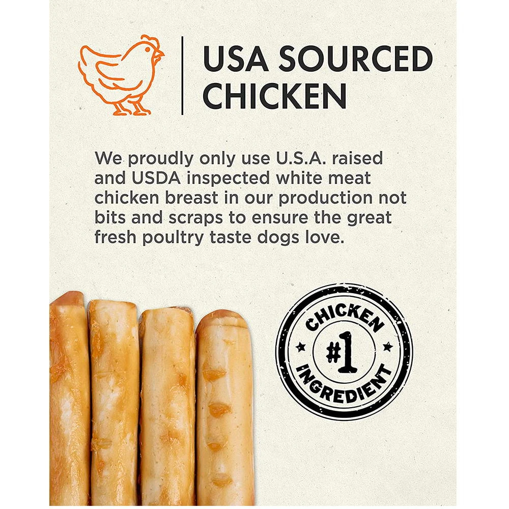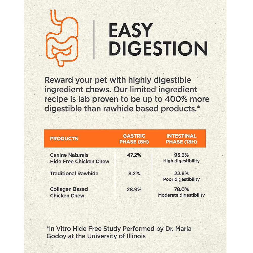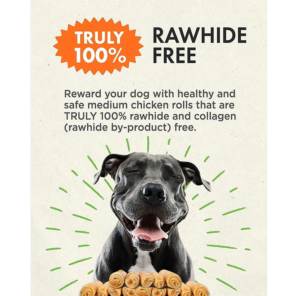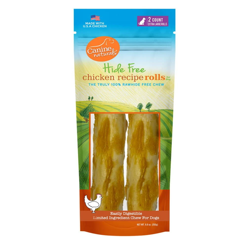 Canine Naturals Hide Free Chews are naturally great tasting. They are a 100% Rawhide Free chewing experience which is made using limited ingredients and is easily digestible. This chew features U.S.A. Sourced and Raised Chicken as the main ingredient for optimum flavor. There is ABSOLUTELY NO RAWHIDE OR COLLAGEN in production. It’s 100% Rawhide Free to ensure easy digestion. These chews can also help clean your dogs’ teeth while satisfying their natural urges to chew.