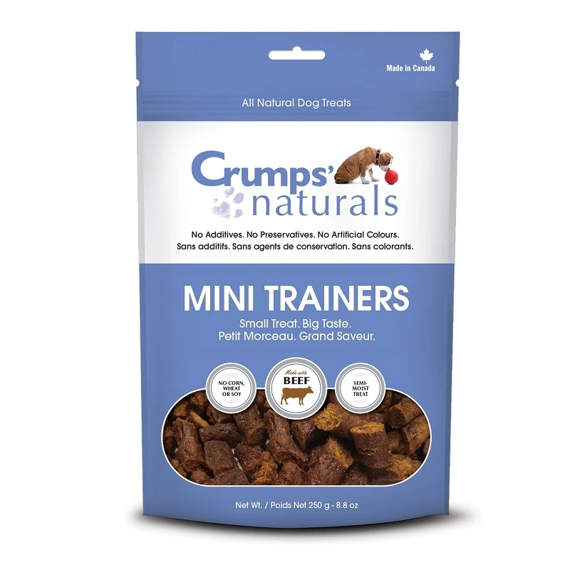 Crumps’ Naturals Mini Trainers are a small size, but have big taste. Perfect for training and perfect for treating, it is a limited ingredient snack that will get the tails wagging. Each piece has approximately 1.5 calories, which allows you to reward with a clean conscience. Crumps’ Naturals produces these treats in small batches to ensure freshness and high quality. It is proudly made in Ontario, Canada.