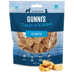 Gunni’s Cod Wafers are super tasty super premium dog treats made from from human-grade single ingredient whole cod filet caught in Iceland. These Cod Wafers are both enticing and delicious. The crunchy texture and grooves help scrape away tartar and plaque to help clean your dog’s teeth!