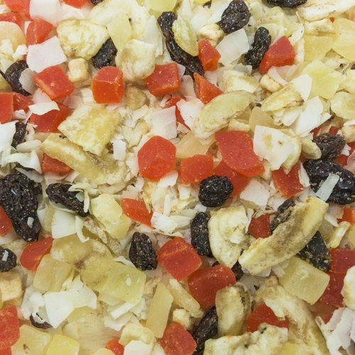 Higgins Sunburst Gourmet Natural Treats for birds are an assortment of fun, healthy, natural snack mixes that supplement your pet’s regular diet. True Fruits for Conures, Parrots and Macaws is a blend of all dried, premium exotic fruits like pineapples, bananas, coconuts, dates and more! No fillers just great, delicious, natural fruits for your pet bird!