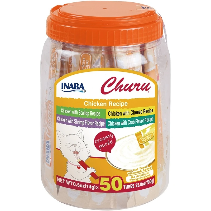 INABA Churu Chicken Recipes Lickable Creamy Puree Cat Treat Variety, 50 Tubes