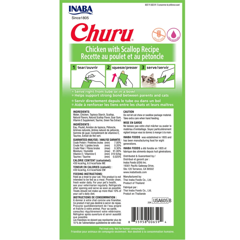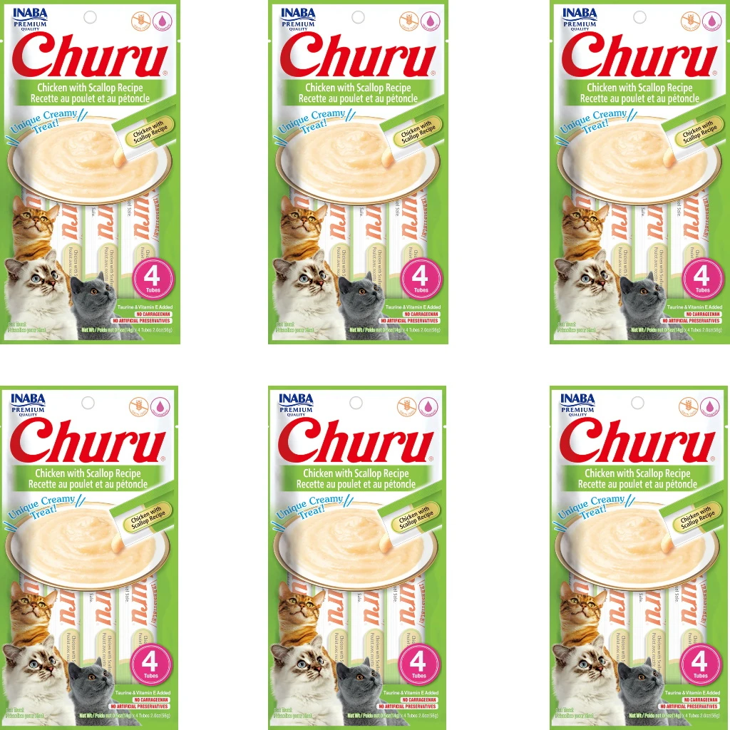 Inaba Churu Grain-Free Chicken With Scallop Puree Lickable Cat Treat, 0.5-oz Tubes, 6 Packs Of 4 Tubes