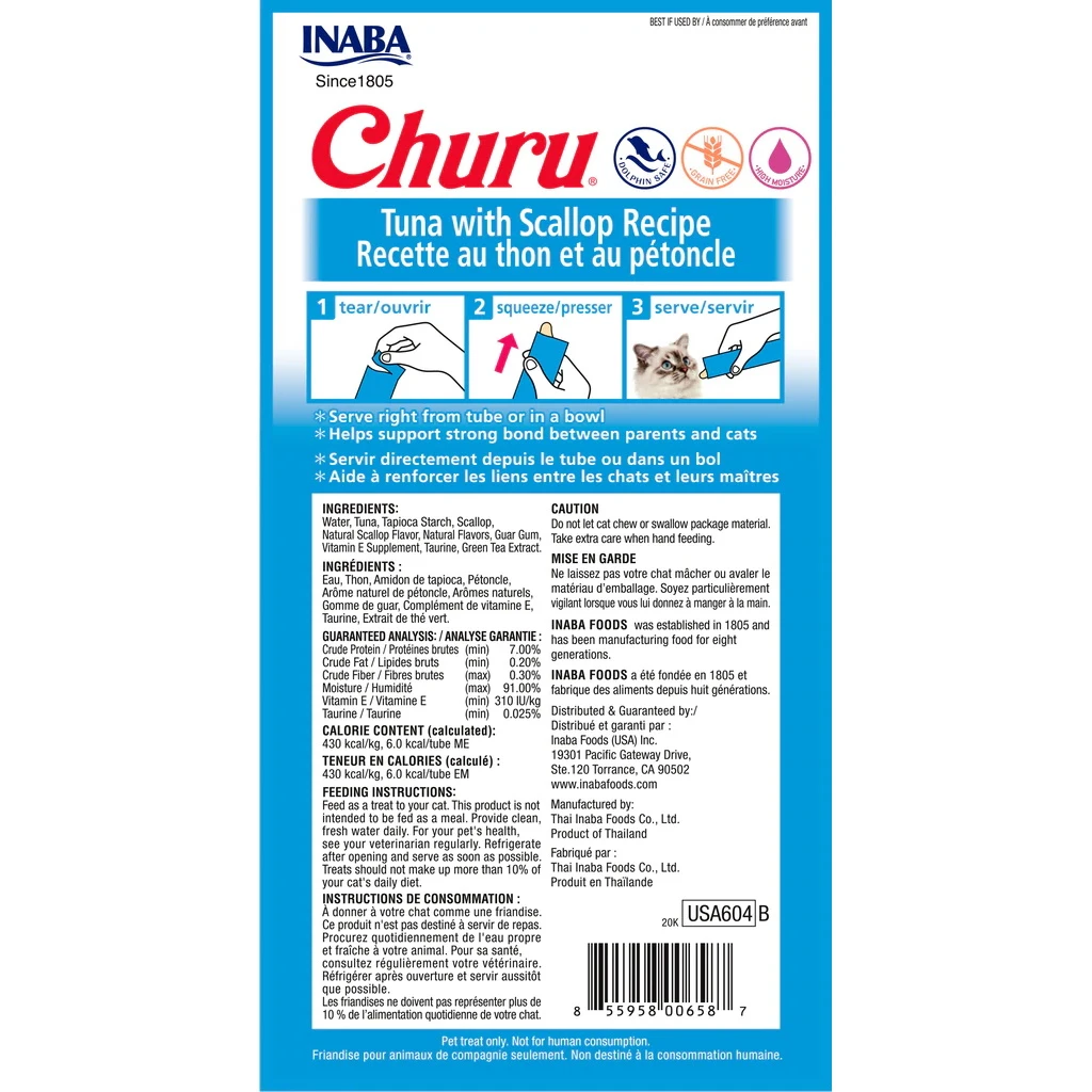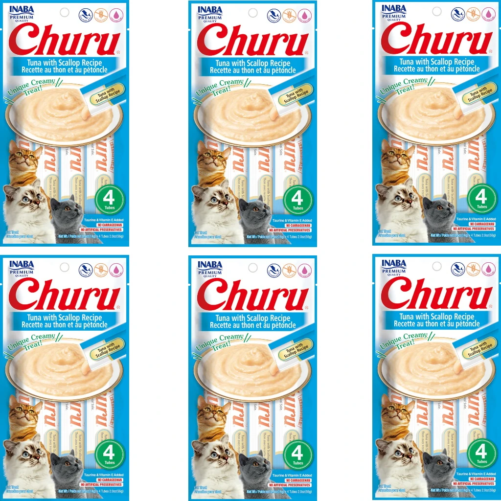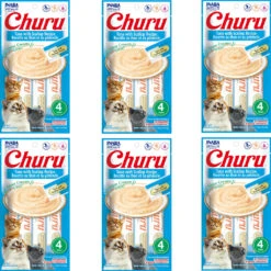 Inaba Churu Grain-Free Tuna With Scallop Puree Lickable Cat Treat, 0.5-oz Tubes, 6 Packs Of 4 Tubes