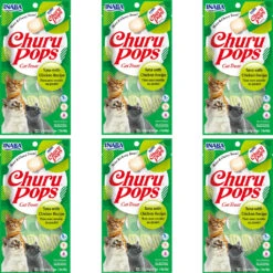 These juicy and tasty treats for cats are made with 100% pure and natural wild tuna or farm-raised chicken! Available in three delectable varieties, Churu Pops are high in moisture felines need for health. Simply tear open a tube and give it a little squeeze to feed these grain-free, preservative-free treats by hand. You can also pour them into a bowl or use as a tasty topper on wet or dry food.