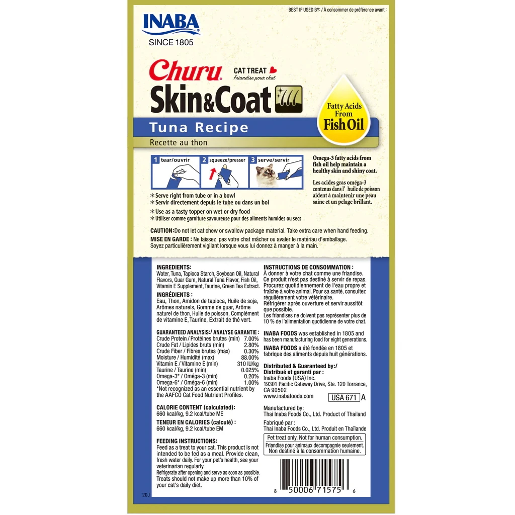 These lickable treats for cats are made with 100% pure and natural wild tuna or farm-raised chicken! Available in four delectable varieties, Churu Skin & Coat are high in moisture felines need for health. Simply tear open a tube and give it a little squeeze to feed these grain-free, preservative-free treats by hand. You can also pour them into a bowl or use as a tasty topper on wet or dry food.