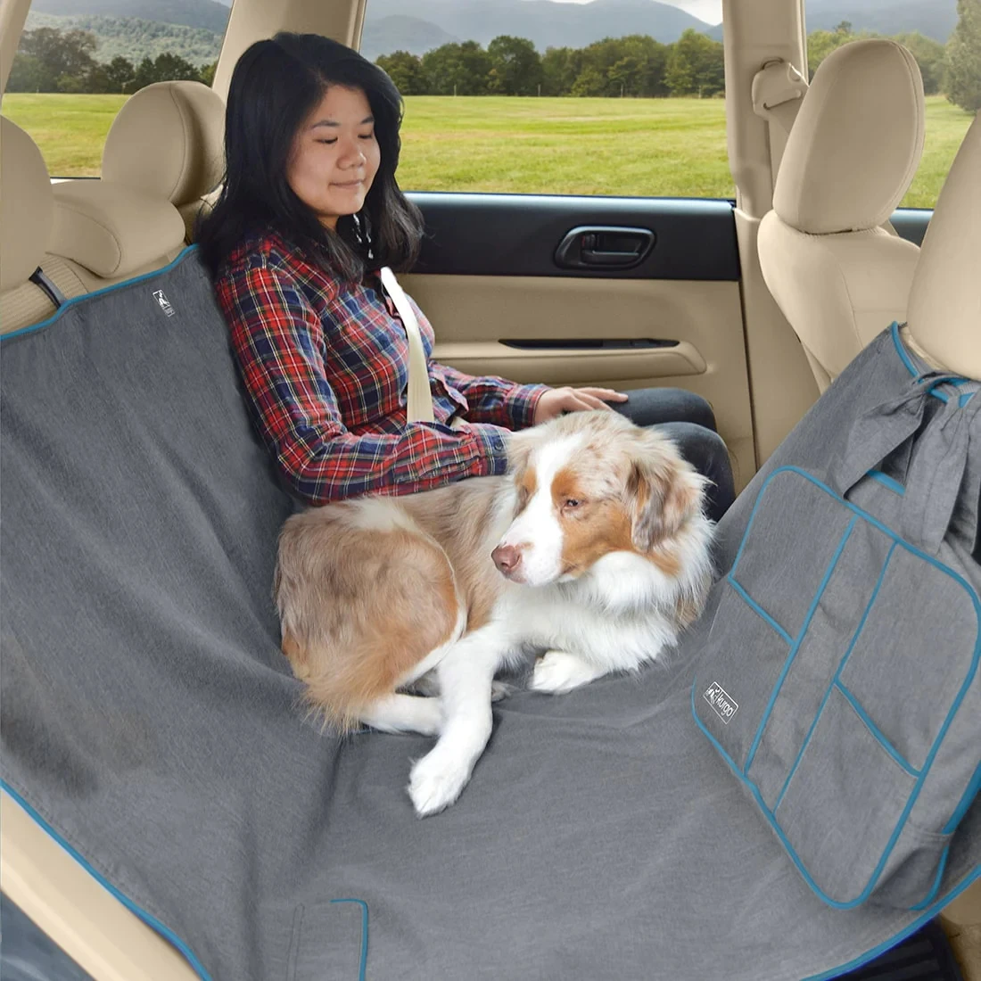 The Heather Hammock delivers all the practical advantages of the original Wander Hammock, but with the style of a durable, beautiful heathered fabric: two different thread colors interwoven to create a subtle flecked pattern. The hammock attaches securely at eight points, protecting your seats and blocking your dog’s access to the front seat. The center zipper allows you to fold back half and host a human passenger, and slots in the hammock allow full use of seatbelts and car seats.
