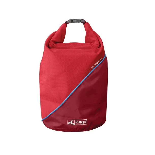 The Kibble Carrier is constructed from tough ripstop material, so your dog can rest easy knowing her kibble is safe and all is right with the world. Engineered like a waterproof river bag, the top rolls and clips, ensuring security and freshness. A discreet zippered pocket at the bottom is perfect for a Collaps-A-Bowl (not included). The zippered side pocket is perfect for extra treats (your dog just whispered that to us).
