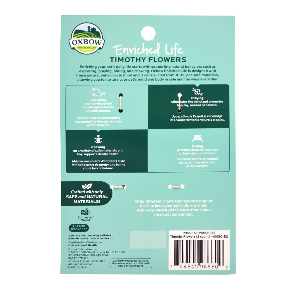 Enriching your pet’s daily life starts with supporting natural behaviors such as exploring, playing, hiding, and chewing. Oxbow Enriched Life is designed with these natural behaviors in mind and is constructed from 100% pet-safe materials, allowing you to nurture your pet’s mind and body in safe and fun ways every day.
