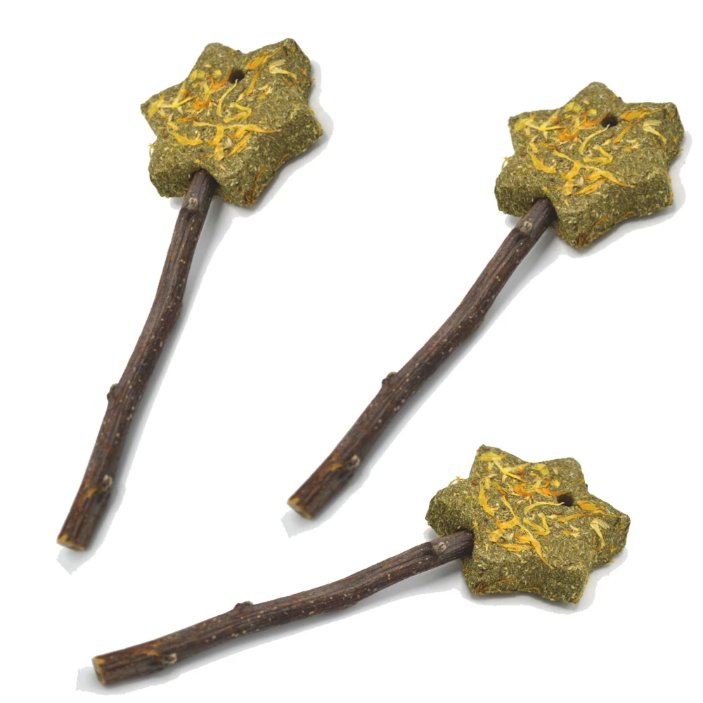 - Fun shape made with high fiber Timothy hay & Apple Wood Stick