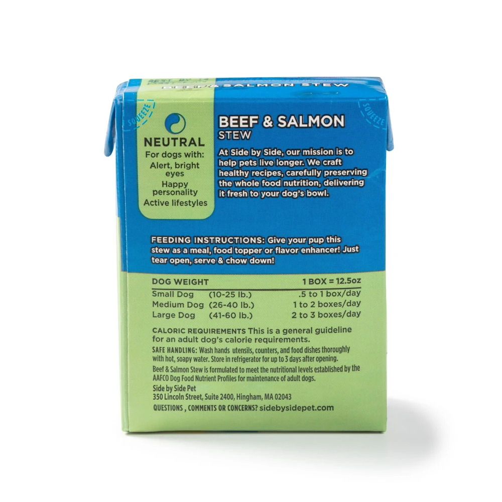 Side By Side tasty Hearty Stews are SO simple to feed – all you have to do is tear open & chow down (your dog, not you)! They use all natural, whole food ingredients to bring you & your pup the absolute best recipes possible – just food that looks like food & smells like food because that’s what it is (in fact, they look + smell just like your mom’s homemade beef stew)! At Side by Side, they craft healthy recipes in small batches, carefully preserving the whole food nutrition and delivering it fresh to your dog’s bowl. Side By Side believes that each day with our pet is amazing, and that the best nutrition helps support your pet throughout their life. That’s more days of running Side by Side, playing side by side, cuddling side by side.