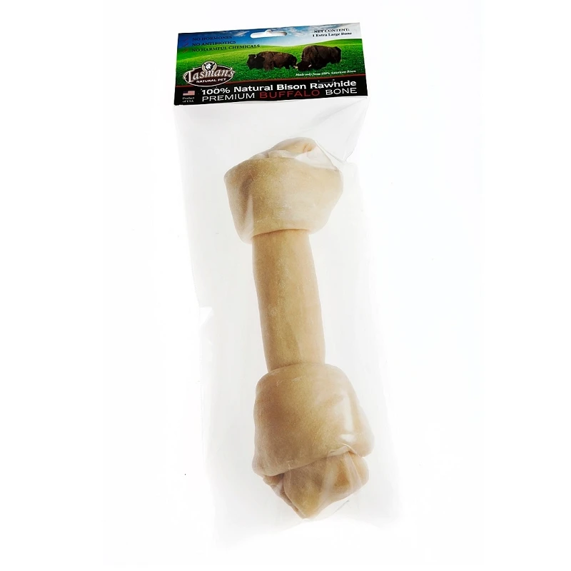 Tasman’s Natural Pet Premium Bison Rawhide Knotted Bone Dog Chew, Extra Large 11-13″