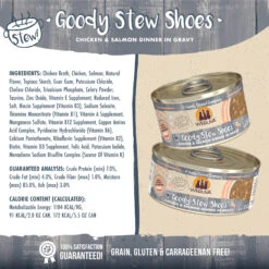 Weruva Classic Goody Stew Shoes is a wholesome recipe for your favorite feline. It’s crafted with Chicken and Salmon in a savory gravy. This canned cat food is a complete diet and is loaded with nutrients your furry feline needs.
