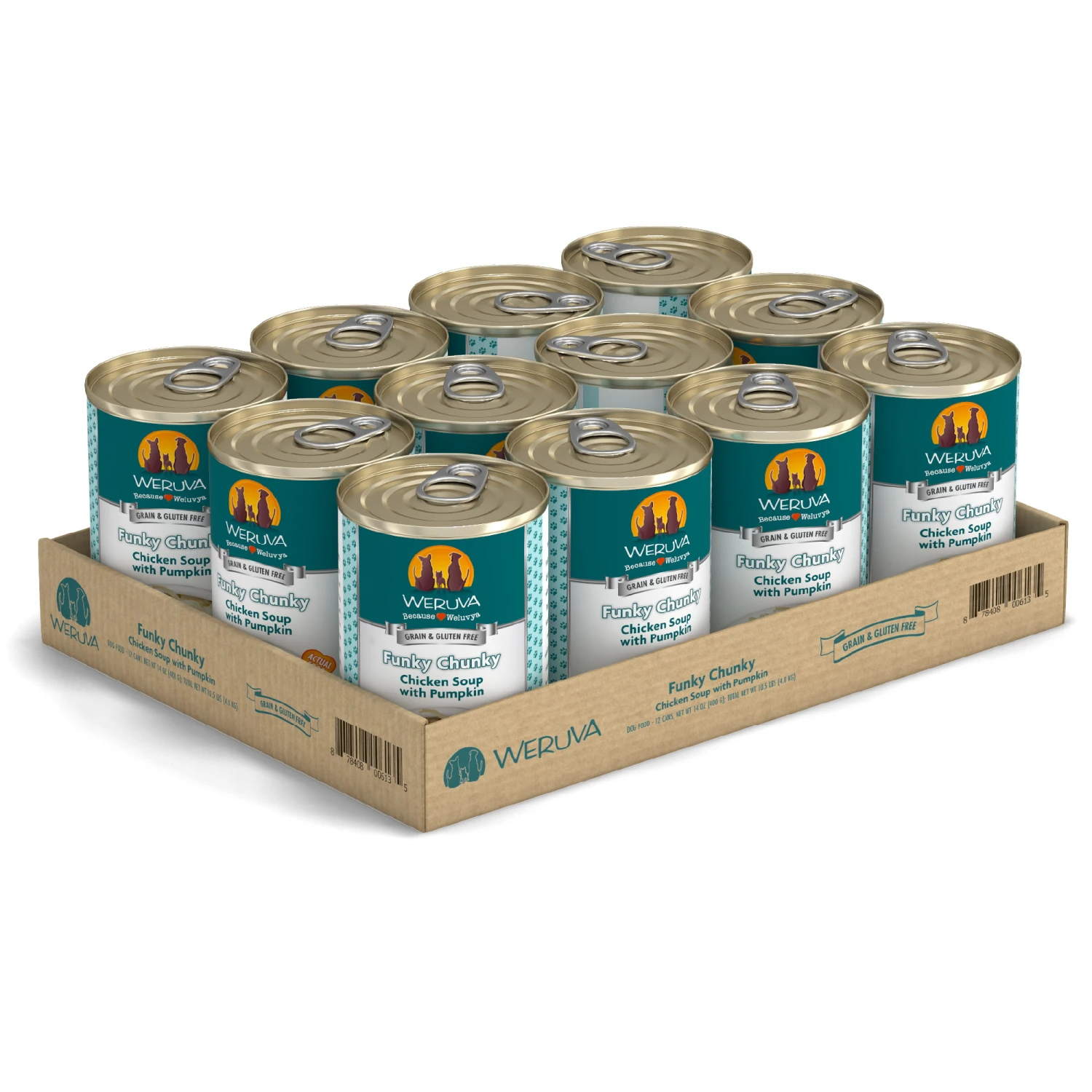 Weruva Funky Chunky Dog Food is a hearty recipe featuring boneless, skinless, white breast meat and lots of chunk for a mouthful! The chicken used in this recipe is free of added antibiotics, free of added hormones, and cage free. This gourmet natural diet is complete and balanced to provide the nutrition your dog needs.