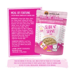 Weruva Slide N’ Serve Meal of Fortune is a complete & balanced diet your furry feline will love. It’s a protein rich formula featuring Chicken Breast with Chicken Liver Pate. This hydrating pate is crafted using the highest quality ingredients and are packed in easy-to-use recyclable pouches.