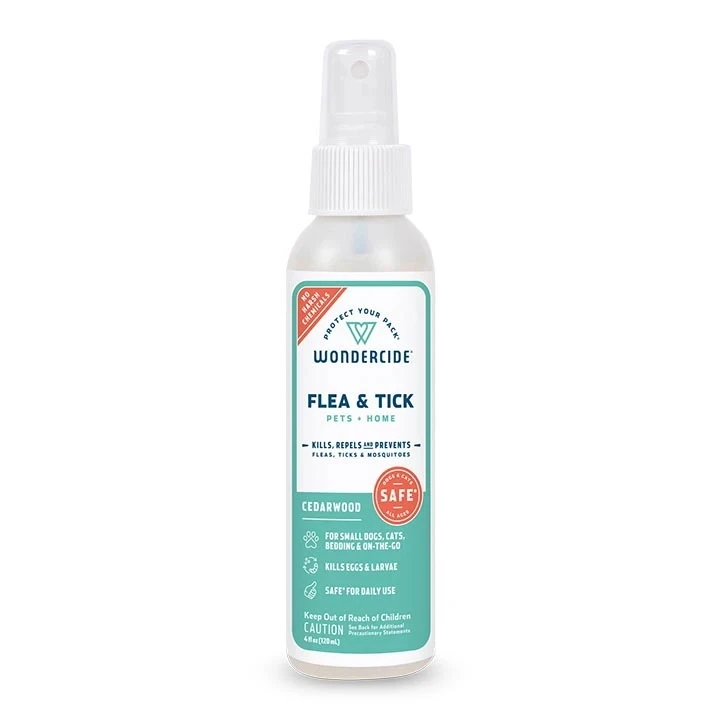 The main active ingredient in this formula is Cedarwood Oil. This powerful essential oil naturally kills and repels fleas and ticks. It suffocates bugs, repels them, and eliminates their eggs and larvae. Proven to work and easy to use. Wondercide is plant based, Lab Tested, and Proven to Work. Safe for dogs and cats of all ages. Made in the USA and holistic-vet approved.